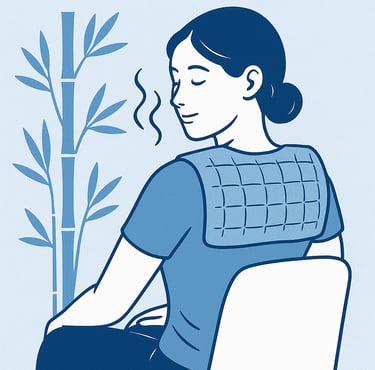 1️⃣ Legen Sie ein warmes Körnerkissen oder eine Wärmflasche auf den oberen Rücken oder Nacken.